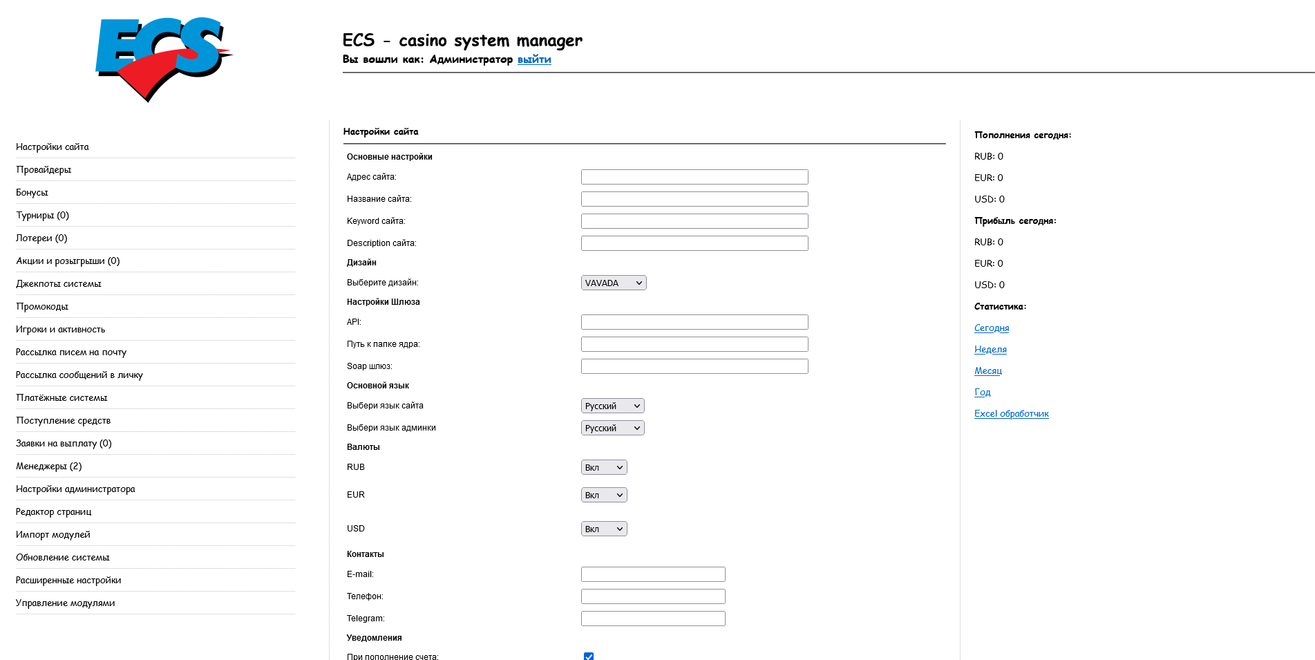 - Статистика всех игр и движения средств