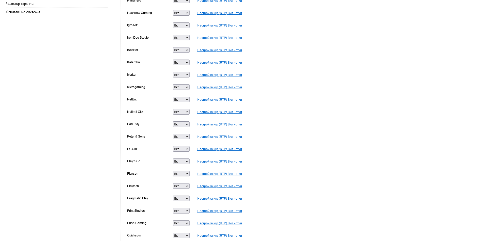 Игры не привязаны к провайдерам, вы сами можете выставлять % RTP